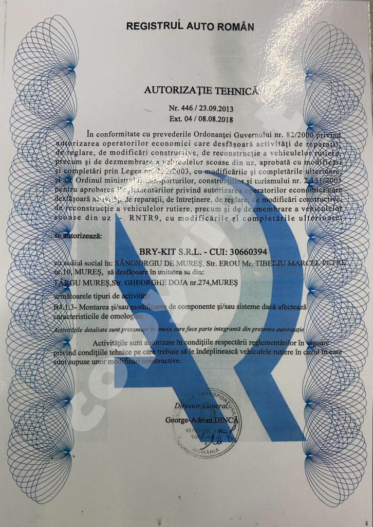 ATELIER AUTORIZAT de Registrul Auto Român Aut. Nr. 446 din 23.09.2013